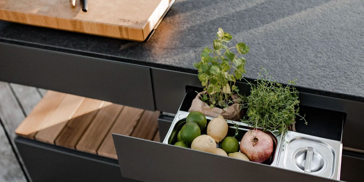 Praktischer Stauraum darf in keiner Grillzimmer-Küche fehlen. Die Paragon Line zeichnet sich durch eine großzügige Schwerlastschublade, eine Zugangstüre mit ausreichend Stauraum und einer bzw. zwei feststellbaren Besteckschubladen mit clever integriertem GN-System aus. Hinter der Zugangstüre kann bei Bedarf eine Gasflasche sicher verstaut werden.
