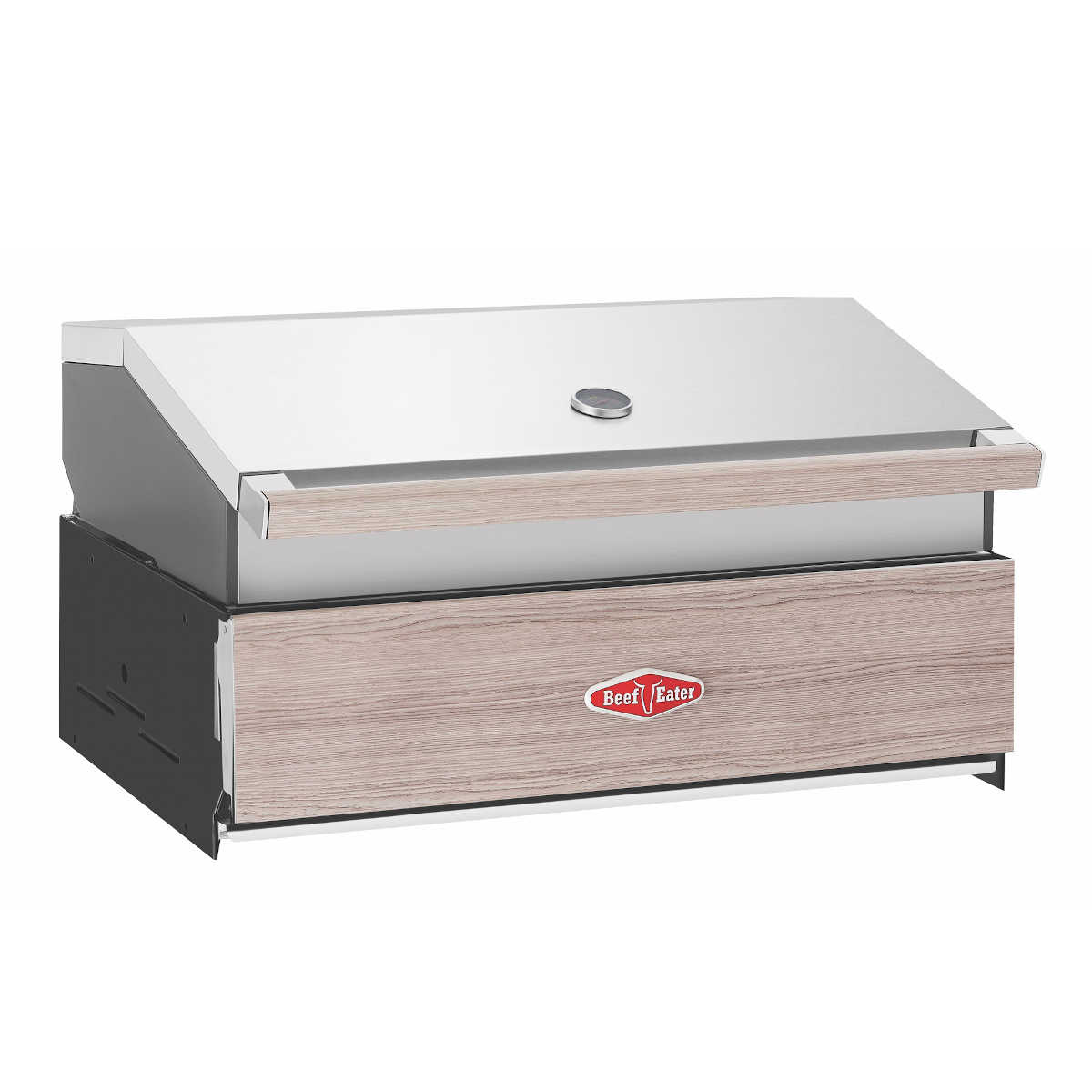Designtechnisch ist der BeefEater Gasgrill 1500 Serie für Eure Außenküche ein wahres Upgrade. Nach dem Grillen verschwinden die Bedienelemente ganz einfach hinter der Designklappe mit edler Holzoptik und Euer Grill wird zum echten Blickfang. Insbesondere im Betrieb im Dunkeln könnt Ihr mit nur einem Klick die blau leuchtenden Sicherheits-LEDs an den Bedienknöpfen einschalten und habt so auch zu späterer Stunde noch alles im Blick.