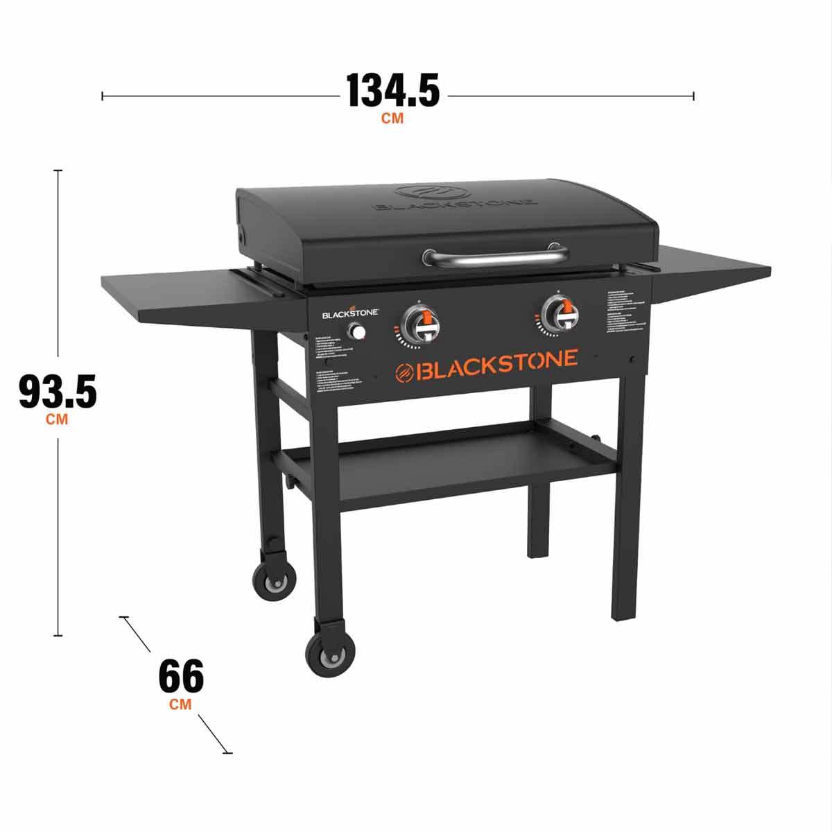 Zwei praktische Seitenablagen dienen als Arbeitsfläche für Zutaten, Saucen oder Zubehör. Und dank der zwei robusten Rollen bewegt Ihr Eure Griddle-Station mühelos durch den Garten oder über die Terrasse.