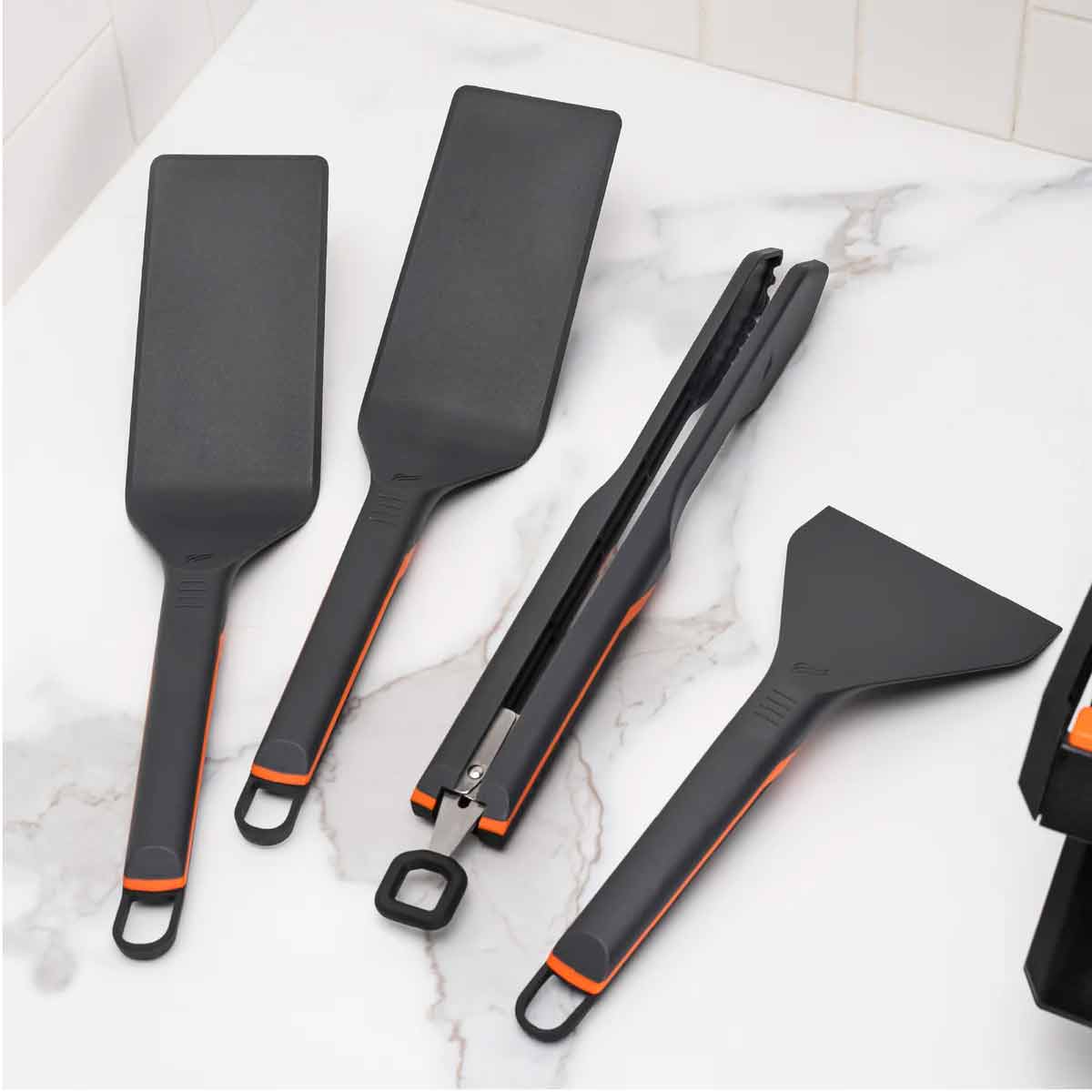 Bringt ultimative Kontrolle, Komfort und Präzision auf Eure Elektro-Grillplatte! Mit dem Blackstone Zubehör-Set für die E-Serie bekommt Ihr ein perfekt abgestimmtes 4-teiliges Werkzeugpaket – ideal zum Wenden, Braten, Schaben und Reinigen.