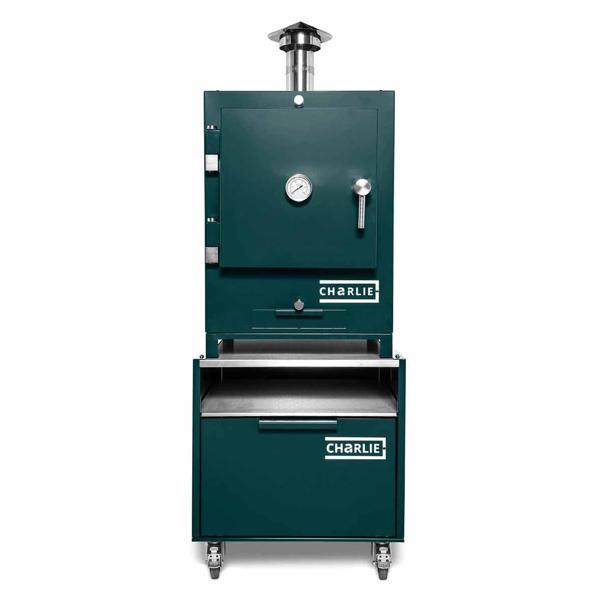 Wie alle Modelle der Marke Charlie Oven ist auch der Cheeky Charlie ein echtes Designobjekt. Seine klare Linienführung, das wetterfeste pulverbeschichtete Stahlgehäuse und die markante Front machen ihn zum Hingucker jeder Outdoor-Küche.