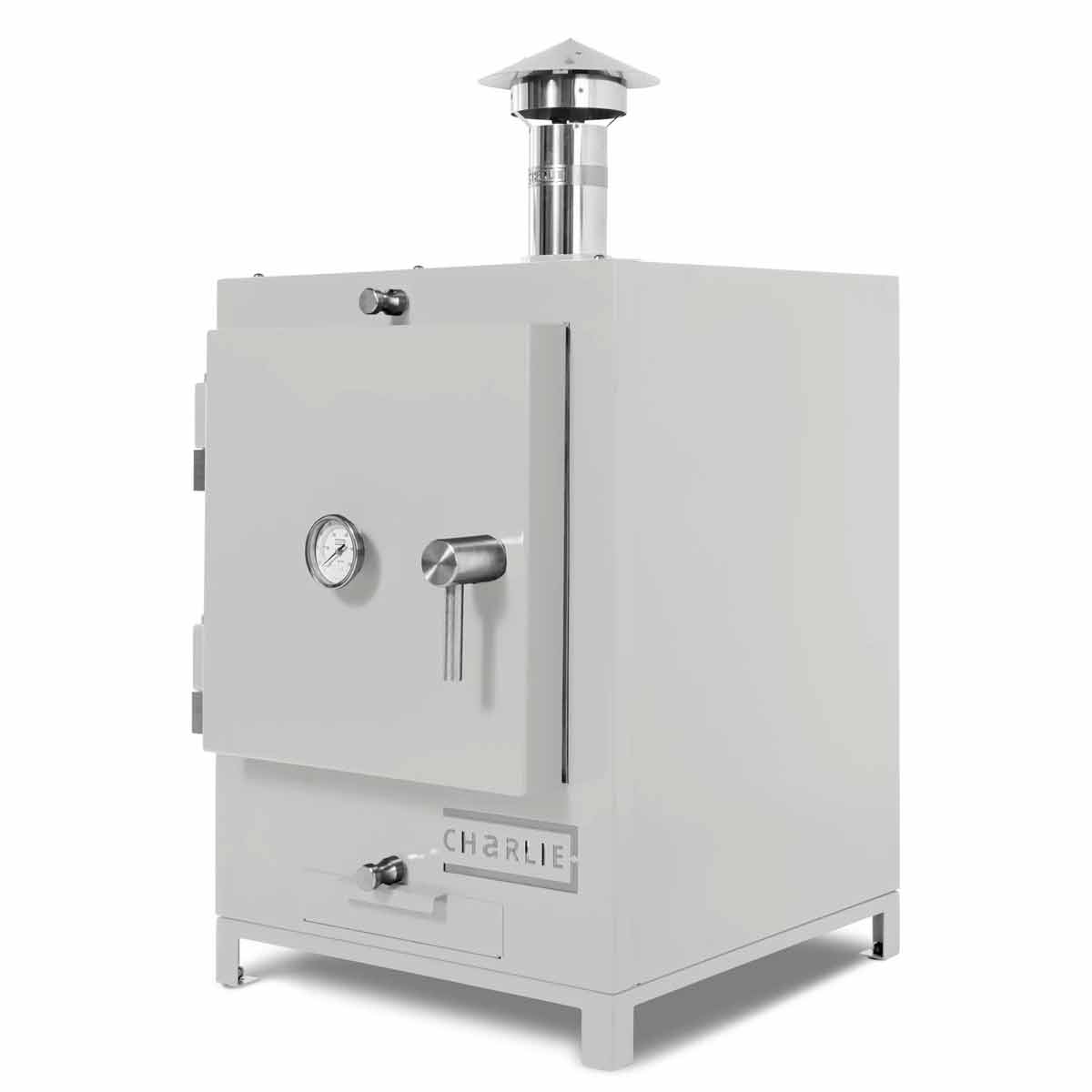 Wie alle Modelle der Marke Charlie Oven ist auch der Cheeky Charlie ein echtes Designobjekt. Seine klare Linienführung, das wetterfeste pulverbeschichtete Stahlgehäuse und die markante Front machen ihn zum Hingucker jeder Outdoor-Küche.