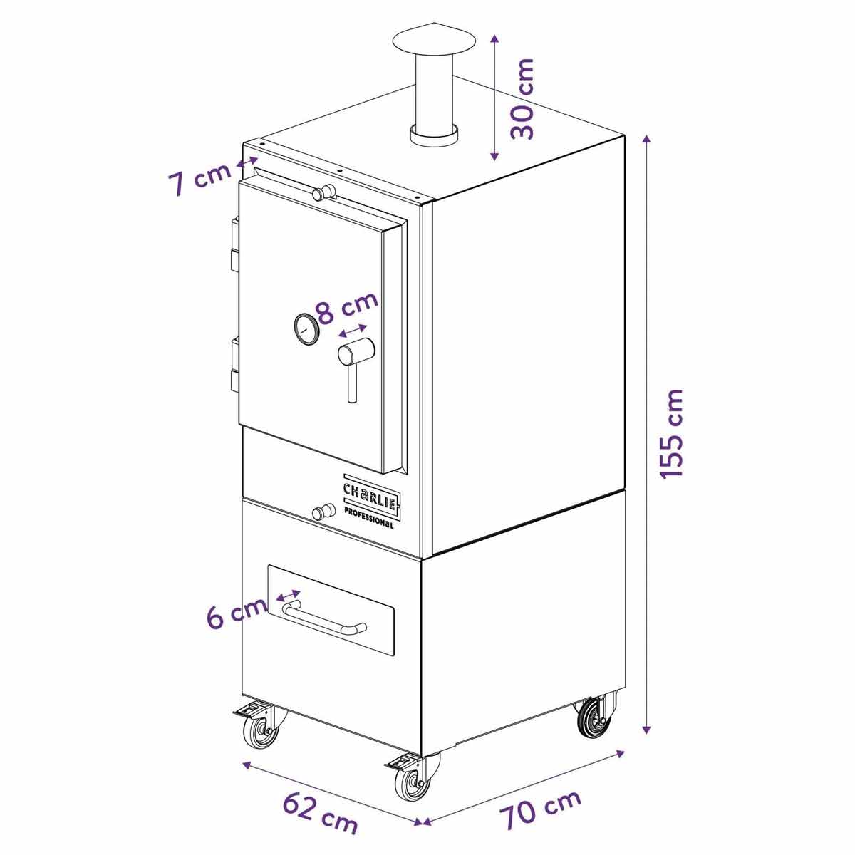 Der Charlie Oven Profi Holzkohleofen ist die ideale Lösung für alle, die im gastronomischen Umfeld täglich Höchstleistung verlangen. Mit seinem verstärkten Stahlkorpus, den komplett aus Edelstahl gefertigten Scharnieren und satten 10 cm mehr Tiefe als das Heimmodell bringt er alles mit, was eine professionelle Küche braucht. Er wiegt rund 80 kg mehr als das private Modell – und genau diese Masse sorgt für beeindruckende Hitzestabilität, Langlebigkeit und gleichmäßige Ergebnisse über den gesamten Service hinweg.