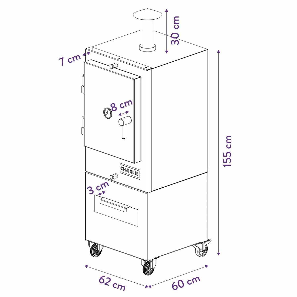 | Aufbaumaß (B x H x T) | 62 x 185 (155 ohne Schornstein) x 60 cm |