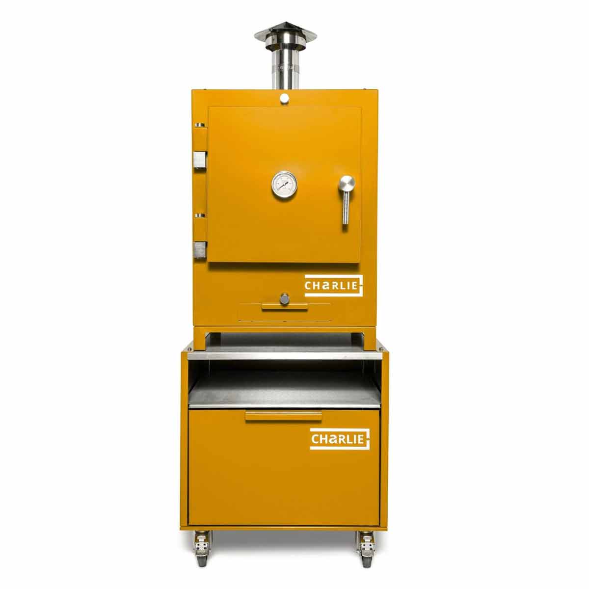 Langlebig, massiv, zuverlässig: Der Unterwagen setzt – typisch Charlie – auf eine hochwertige Edelstahlkonstruktion. Die Edelstahl-Arbeitsfläche trägt Euren Ofen sicher und absolut stabil, während die tiefe Edelstahl-Ablage darunter zusätzlichen Platz für Zubehör und Tools bietet.