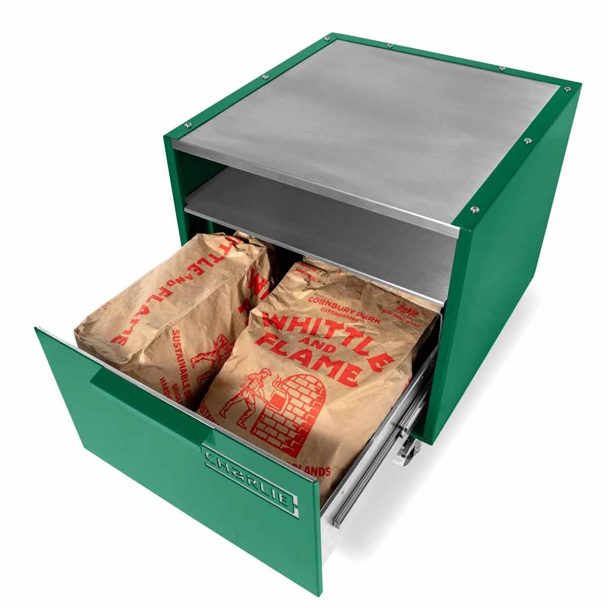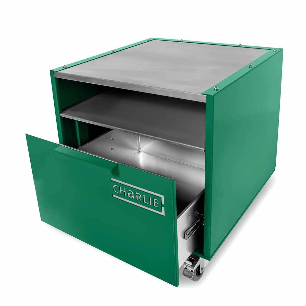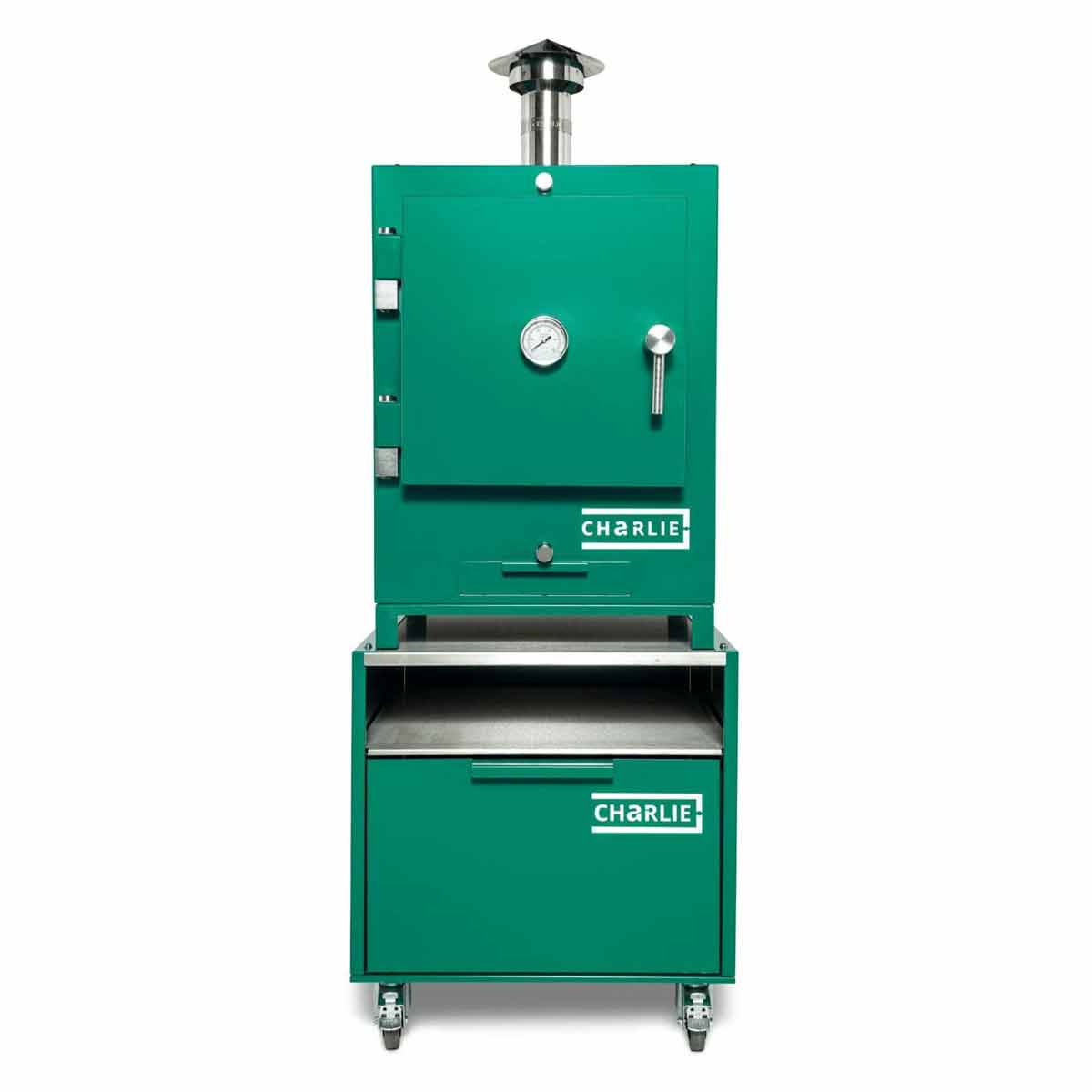 Langlebig, massiv, zuverlässig: Der Unterwagen setzt – typisch Charlie – auf eine hochwertige Edelstahlkonstruktion. Die Edelstahl-Arbeitsfläche trägt Euren Ofen sicher und absolut stabil, während die tiefe Edelstahl-Ablage darunter zusätzlichen Platz für Zubehör und Tools bietet.