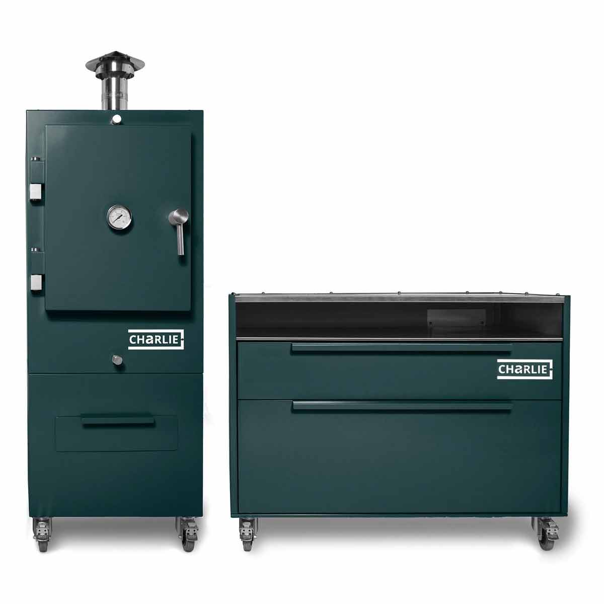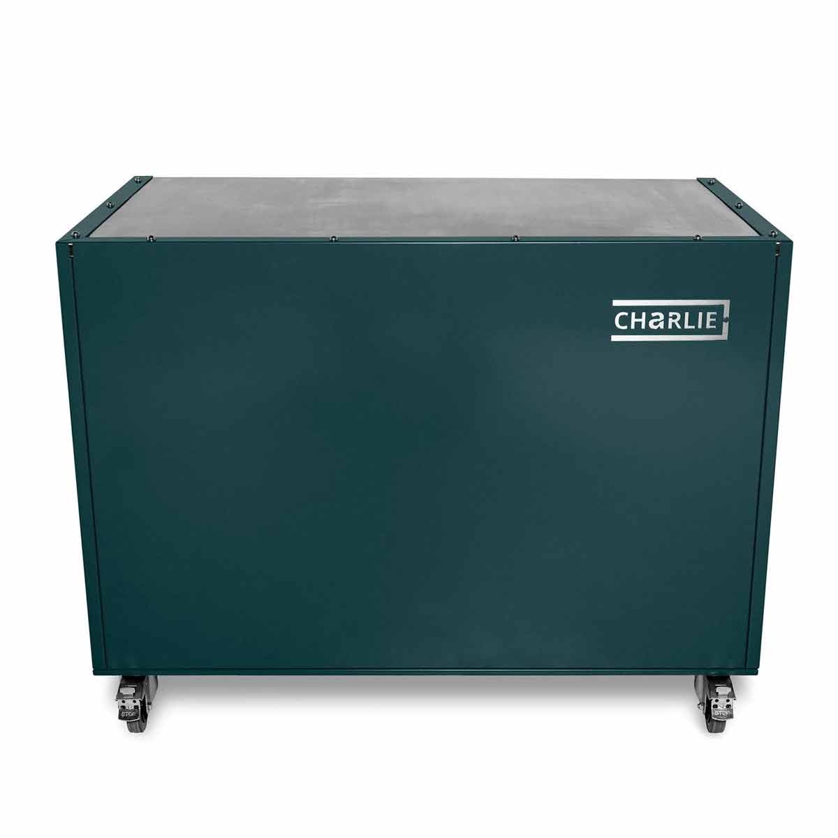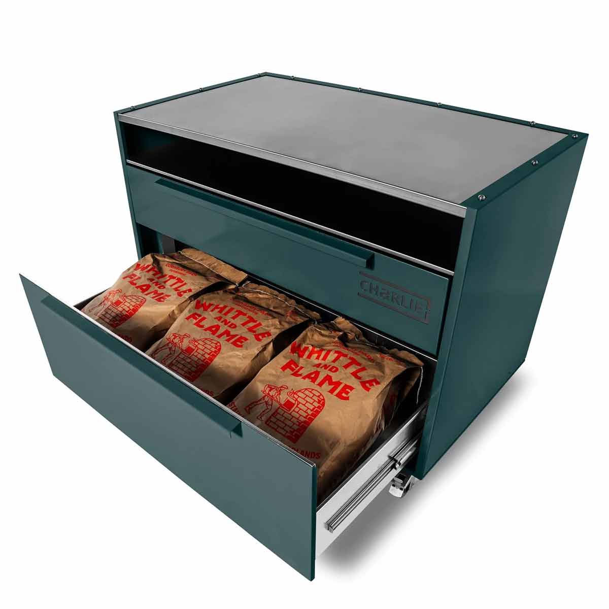 Mit seiner eleganten pulverbeschichteten Außenhülle in den typischen Charlie-Farben lässt er sich perfekt mit allen Charlie Oven Modellen kombinieren – ob Classic, Professional oder Cheeky Charlie.