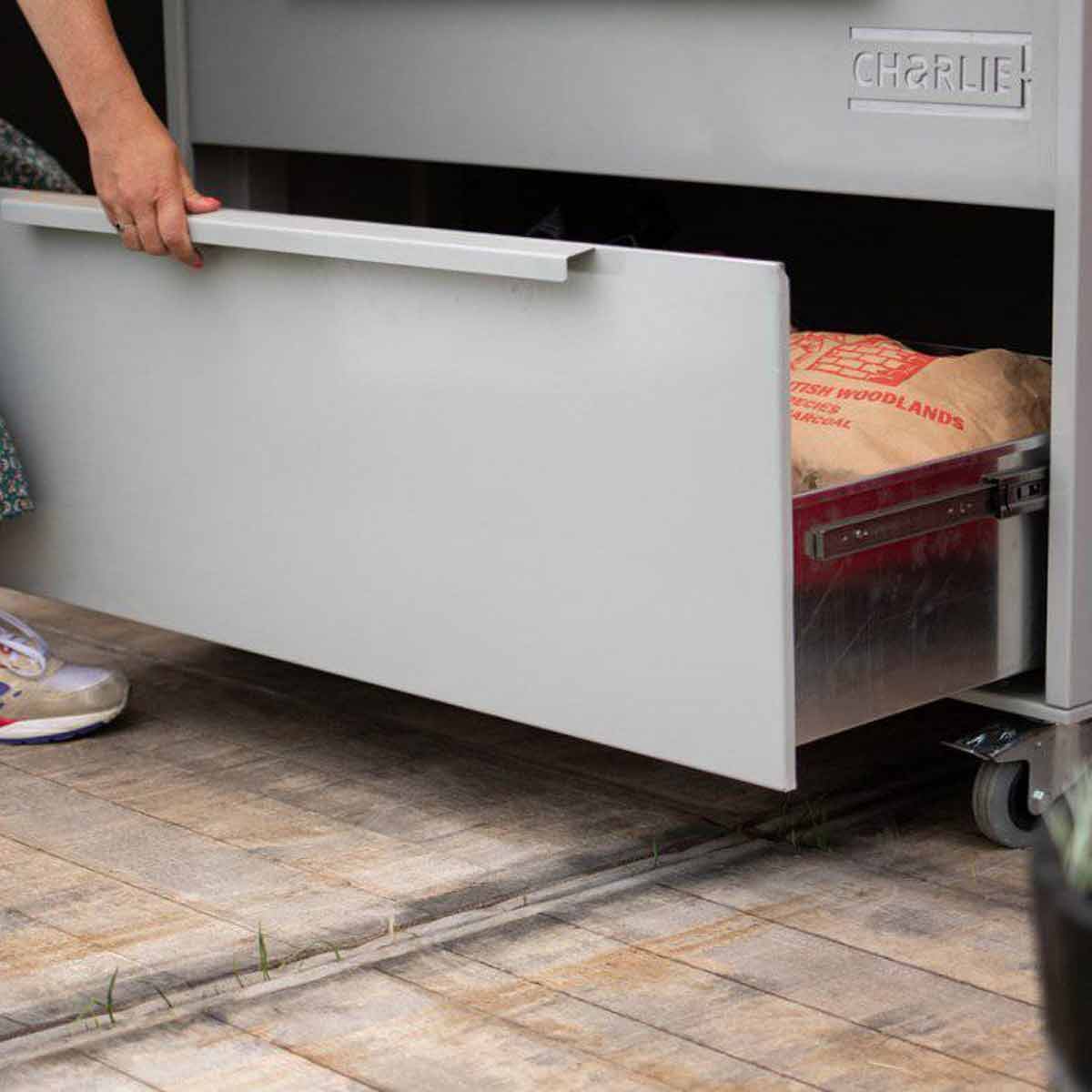 Der Charlie Oven Beistellwagen bringt Funktionalität, Flexibilität und Stil in Eure Outdoor-Küche. Ob zum Zubereiten, Servieren oder als mobile Bar – dieses Premium-Modul ist der ideale Partner für Euren Charlie Oven und macht das Kochen im Freien noch komfortabler und schöner.