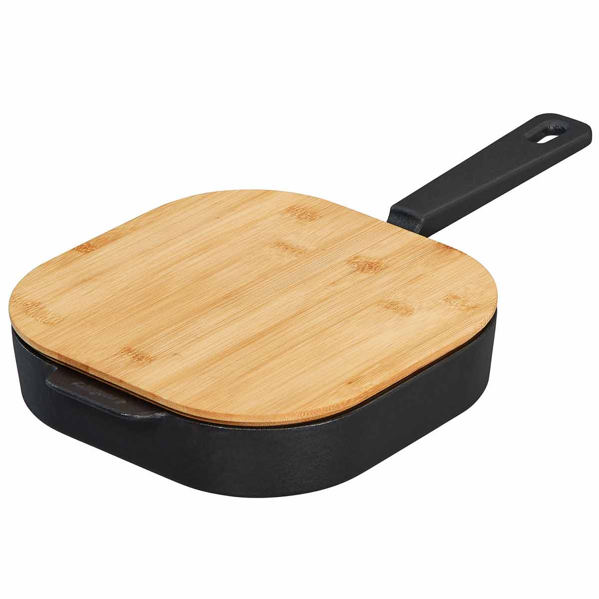 Enders Gusseisenpfanne M | 23 x 23 cm | inkl. Bambusbrett