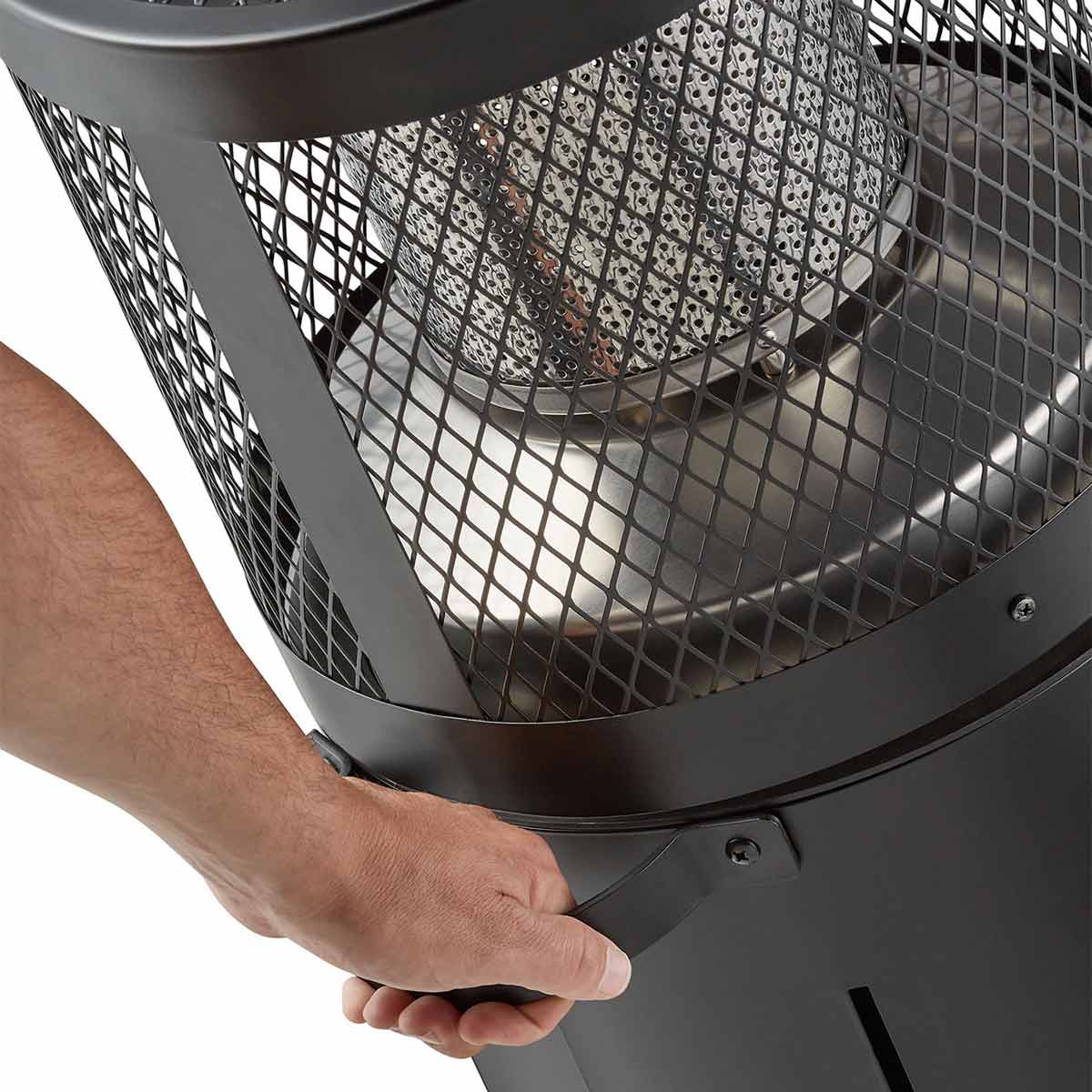 Das pulverbeschichtete Stahlgehäuse in elegantem Schwarz wirkt modern und robust zugleich. Mit den integrierten Transportrollen und dem praktischen Griff lässt sich der Heizstrahler mühelos an jeden gewünschten Standort bewegen – perfekt für flexible Nutzung auf Terrasse oder Balkon.