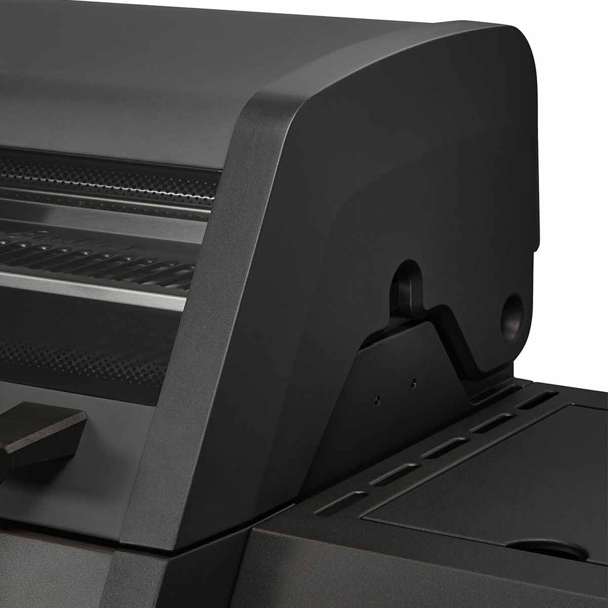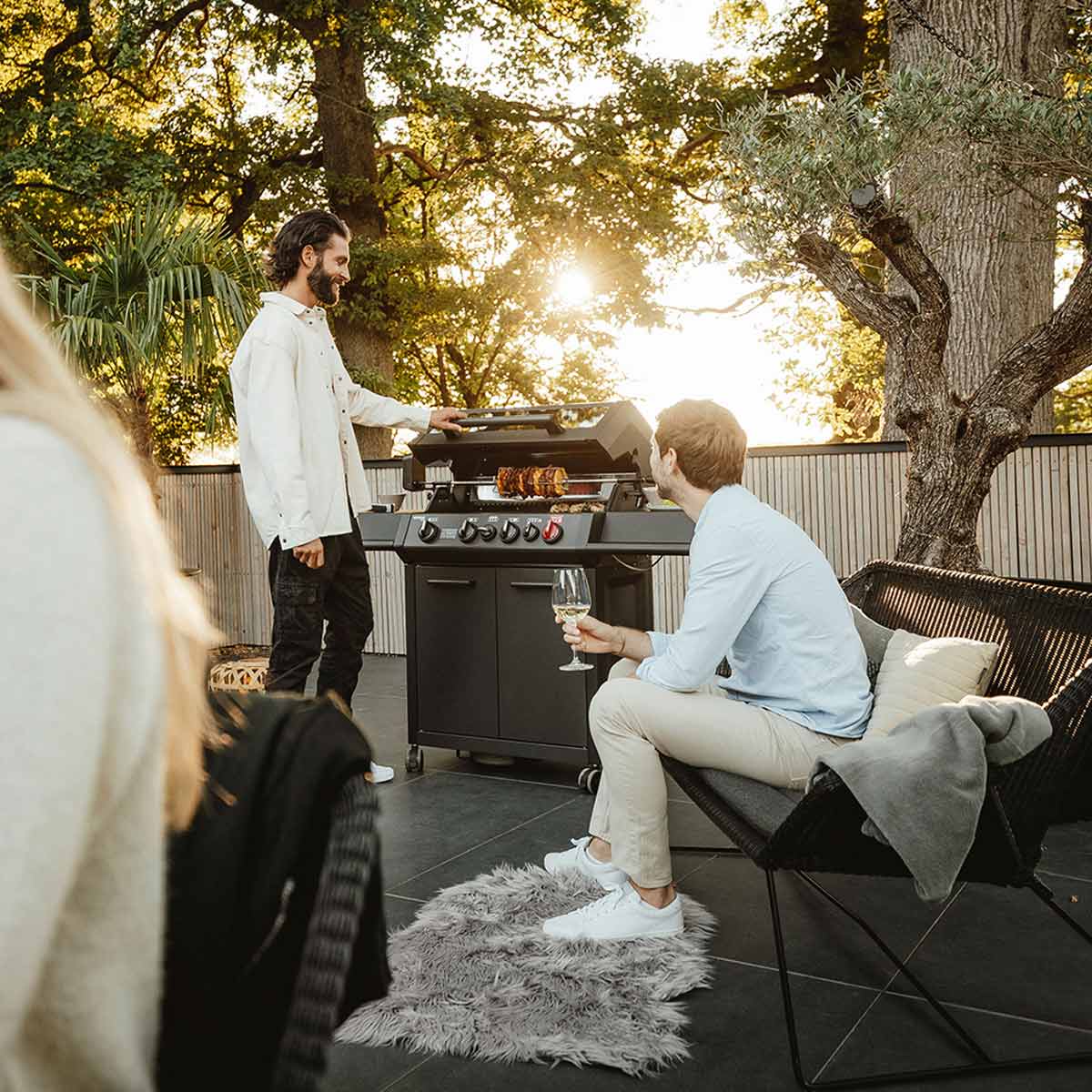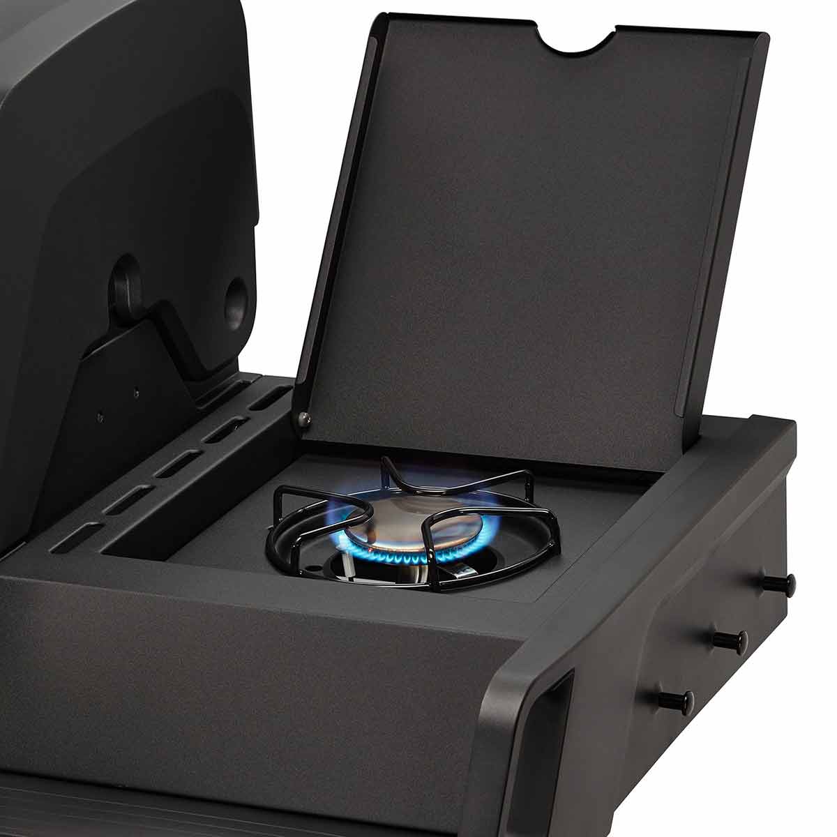 Außerdem könnt Ihr auf der 800°C Turbo Zone Eurem Grillgut mit ordentlich Röstaromen Feuer machen. Hier sorgt ein frei regulierbarer 4,2 kW-Brenner für Extra-Power, das spezielle Mesh-Gewebe der Brennerabdeckung heizt zusätzlich mit Infrarot-Hitze ein. Wer auf Spießgerichte und krosse Pizza steht, wird sich über die zusätzliche Heckbrenner-Power freuen, die mit 3,5 kW für krosse Grillergebnisse sorgt. Und da auch Beilagen beim BBQ-Menü eine wichtige Rolle spielen, rundet ein Seitenkochfeld die Ausstattung perfekt ab.