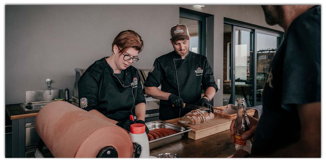 Gerne steht unser Team zur Betreuung Eures Events zur Verfügung. Wenn Ihr und Eure Gäste mehr über die Kunst des Grillens wissen möchtet, dann könnt Ihr Eure Feier in Form eines Grillkurses abhalten.