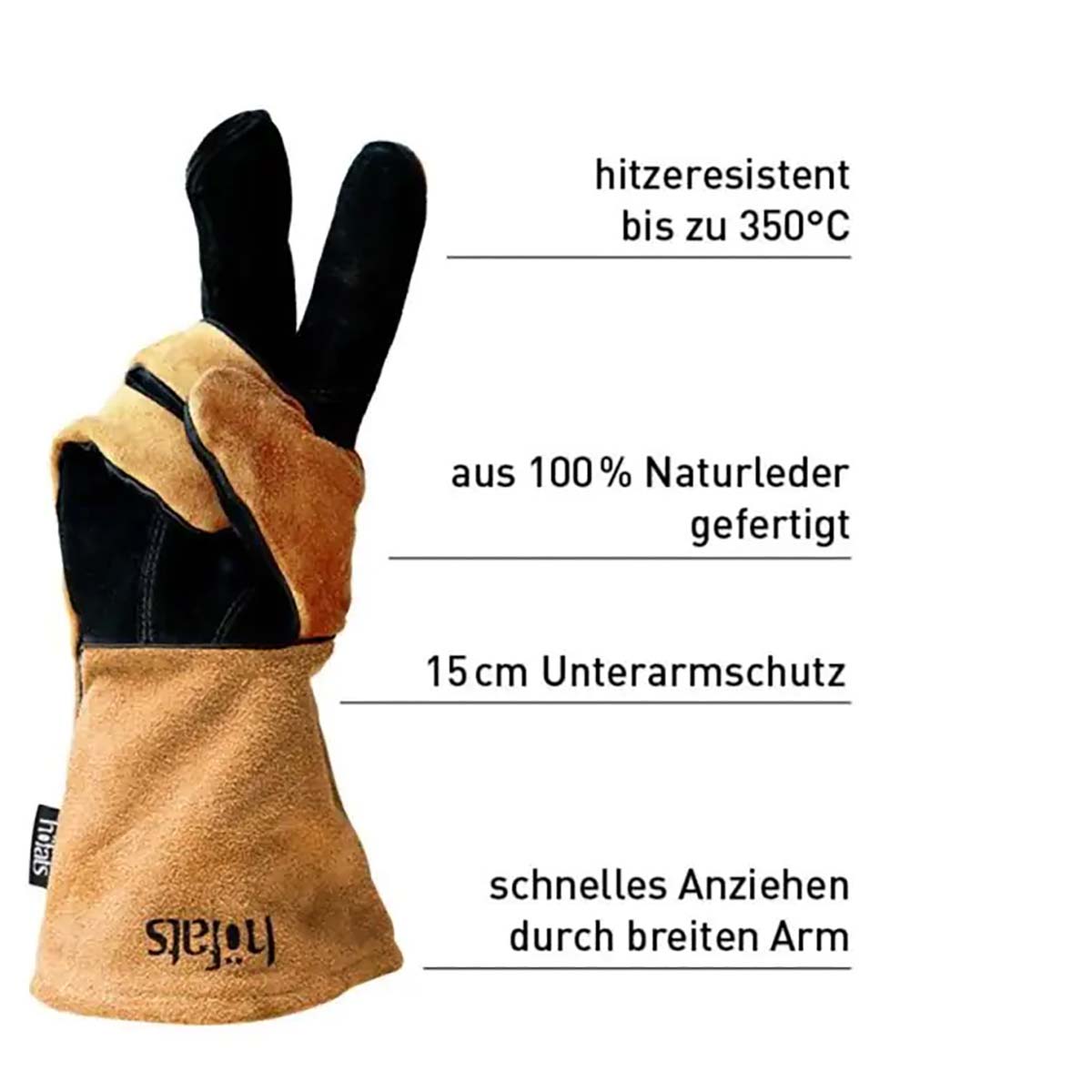 - temperaturbeständige Feuerhandschuhe aus hochwertigem Naturleder