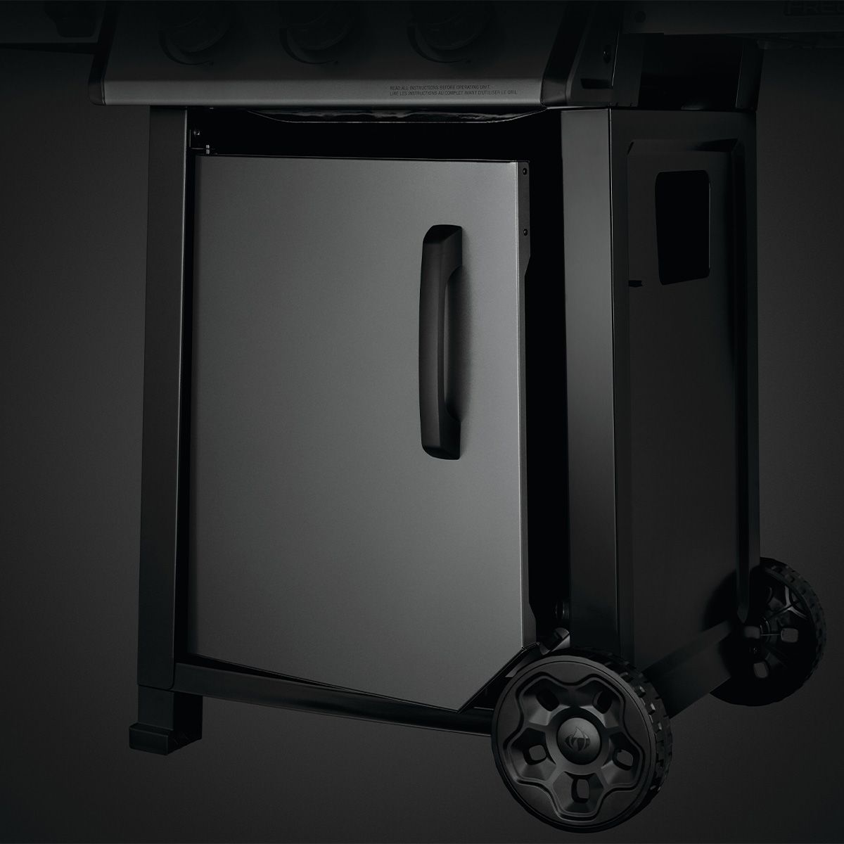 Die rechte Seitenablage des Freestyle 425 SIB ist klappbar, so dass dieser Gasgrill extrem kompakt daherkommt. Vier Edelstahl-Hauptbrenner sorgen dank der emaillierten Flammenschutzbleche für eine gleichmäßige Hitzeverteilung und bieten Grillspaß pur! Der Freestyle SIB besitzt neben den vier Hauptbrennen noch den legendären SIZZLE ZONE™ Infrarotbrenner. Dieses Aushängeschild von Napoleon® verwöhnt Ihr Grillgut bei bis zu 800 Grad Celsius mit köstlichen Röstaromen und ist natürlich auch perfekt für Wok- oder Pfannengerichte geeignet. Auch die Reinigung des Gasgrills fällt dank der seitlich zu entnehmenden Fettauffangschale besonders leicht. Zu guter Letzt sind es kleine Details, die den Napoleon® Freestyle auszeichnen: Zum Beispiel der praktische Flaschenöffner in der Seitenablage oder auch der Soft-Touch Griff des Deckels, der jeden Blick unter den Deckel besonders angenehm macht.