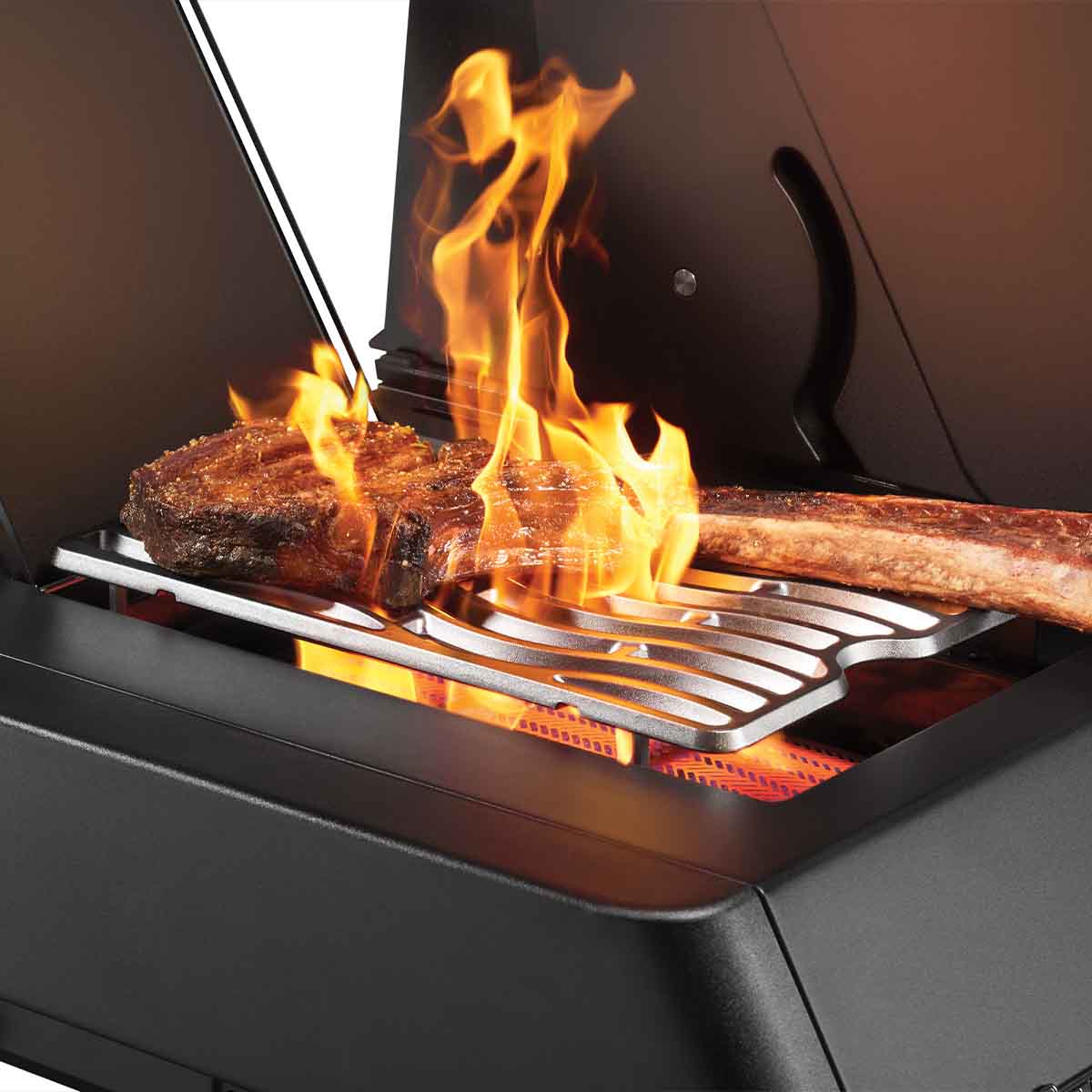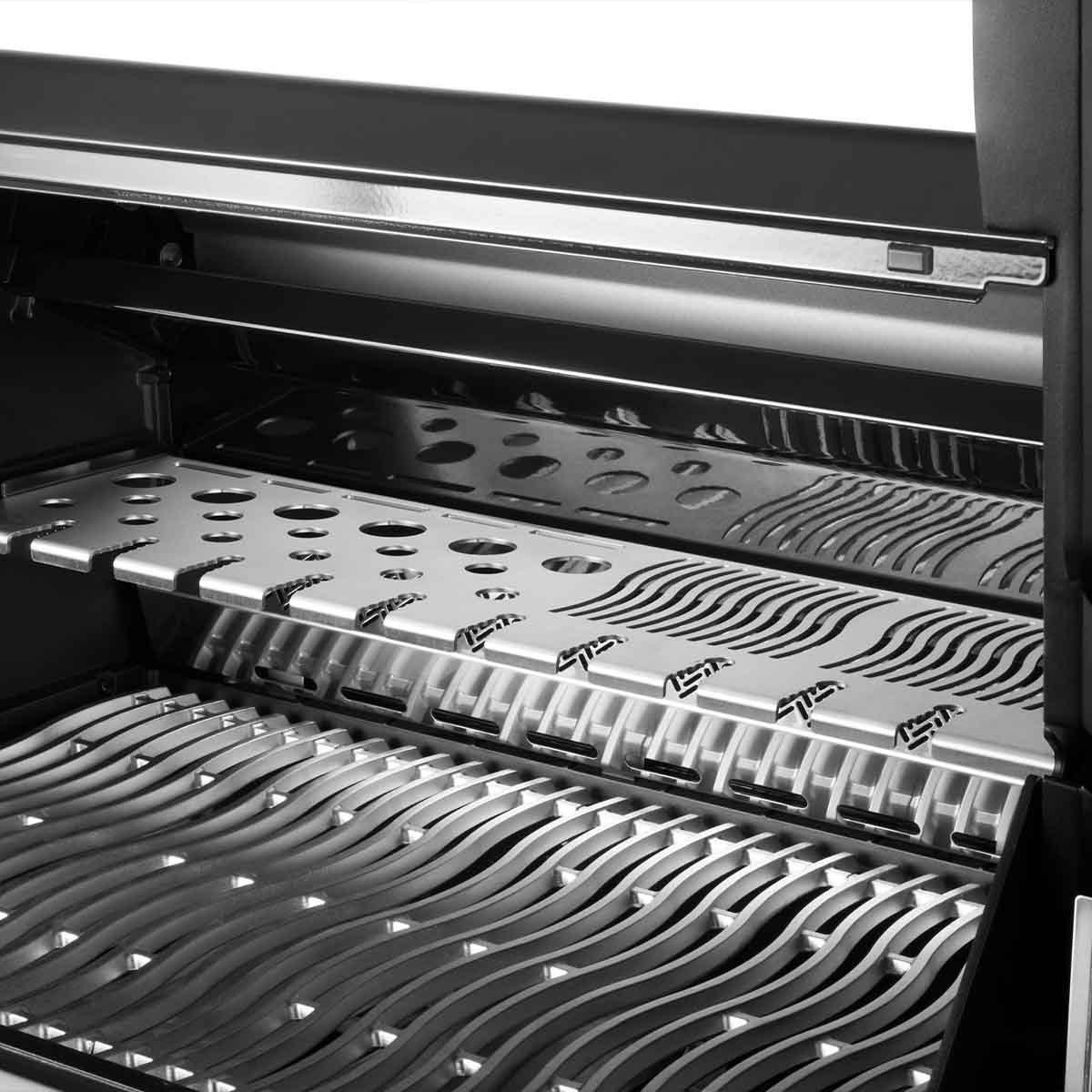 - Große Infrarot SIZZLE ZONE (5 kW) mit höhenverstellbarem Grillrost aus Edelstahlguss