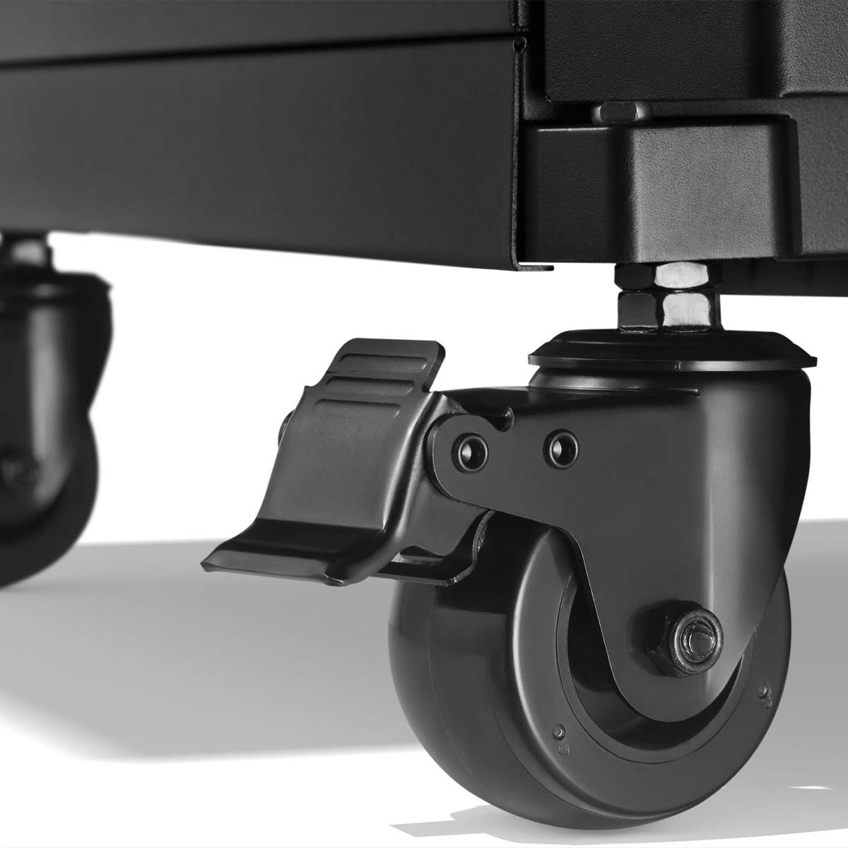 - 4 robuste Schwerlast-Lenkrollen mit Feststellfunktion