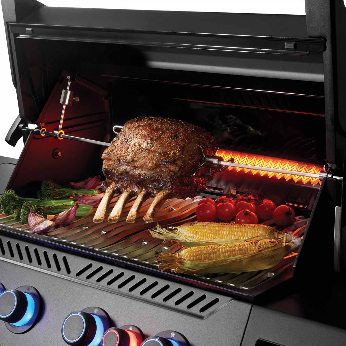 Der extrabreite Infrarot-Heckbrenner, die größere SIZZLE ZONE, pflegeleichte WAVE-Edelstahlroste sowie der clevere Multifunktions-Warmhalterost zählen beim Prestige 500 Connected zur erstklassigen Grundausstattung. Zusätzlich hat der Premium Grill aus der Napoleon Prestige Serie neben den Hardware Highlights smarte Bedienhilfen mit an Bord, die beim nächsten BBQ zuverlässig für köstliche Gerichte und begeisterte Gäste sorgen.