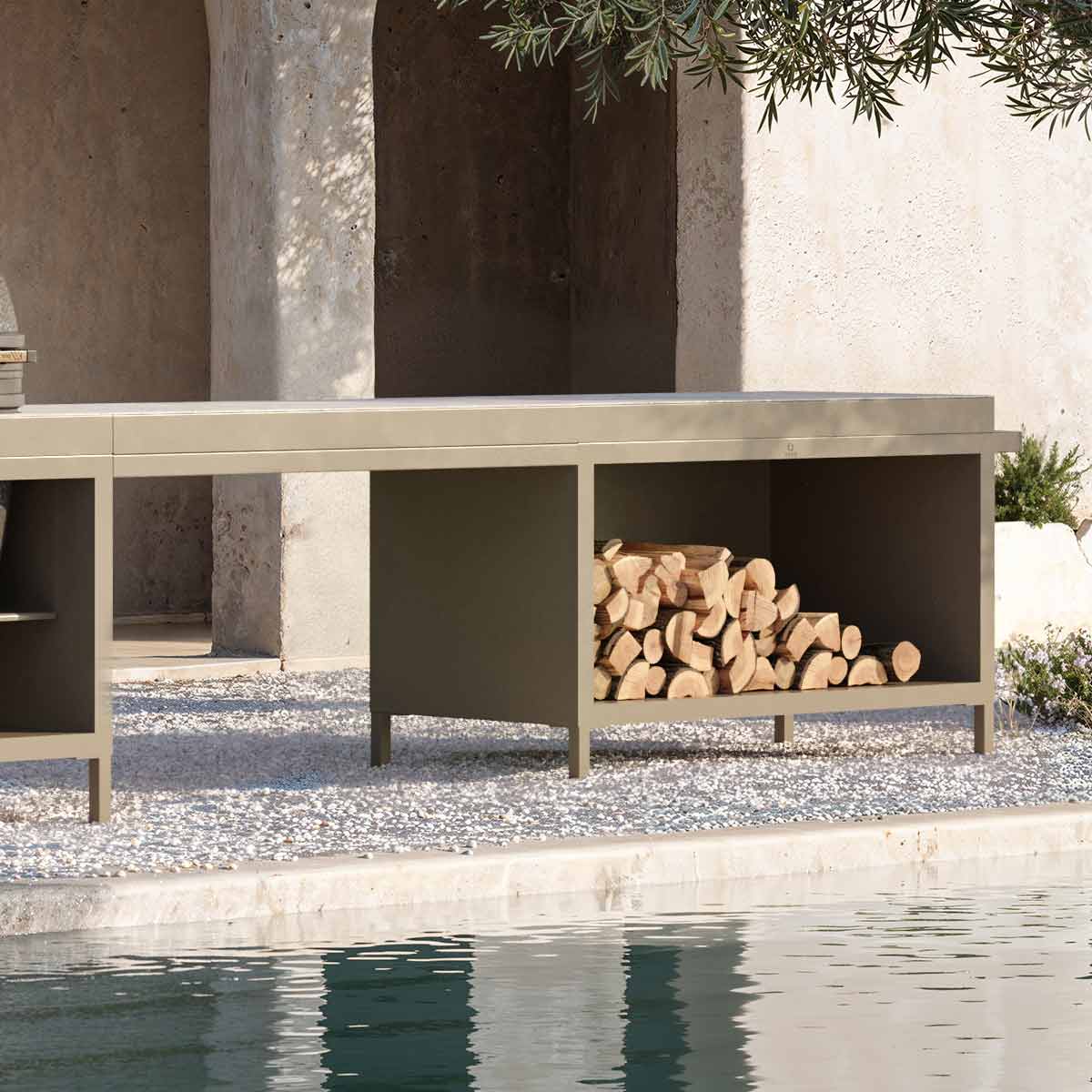 Das Mise en Place Modul ist der perfekte Helfer für Eure Outdoor-Küche: Mit einer großzügigen Arbeitsfläche aus Dekton und praktischen Ablagen darunter habt Ihr alles griffbereit, was Ihr für die Vorbereitung und Organisation braucht.