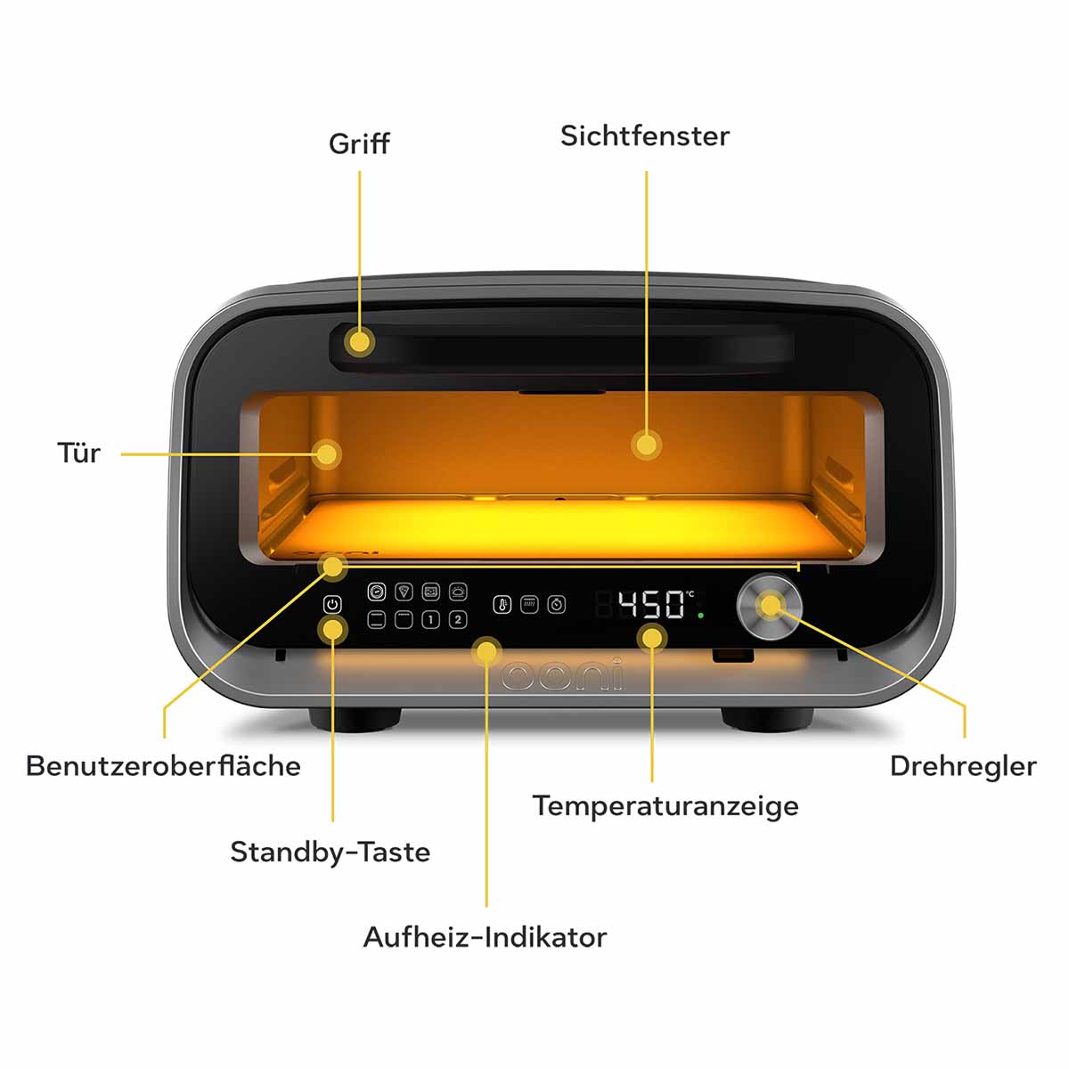 - Temperatur bis 450 °C für authentische Steinofen-Pizza