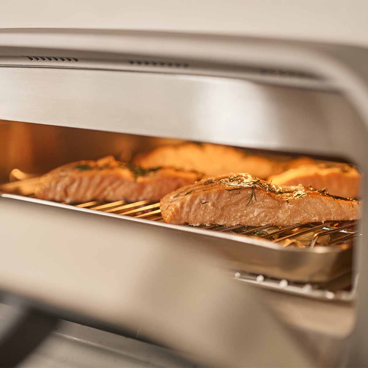 Dank voll-elektrischer Technologie könnt Ihr den Ooni Volt 2 sowohl indoor als auch outdoor einsetzen – unabhängig von Gasflaschen oder Holznachschub. Über das intuitive digitale Bedienfeld stellt Ihr Temperatur und Timer präzise ein, während die integrierte Innenbeleuchtung dafür sorgt, dass Ihr Eure Pizza stets im Blick habt.