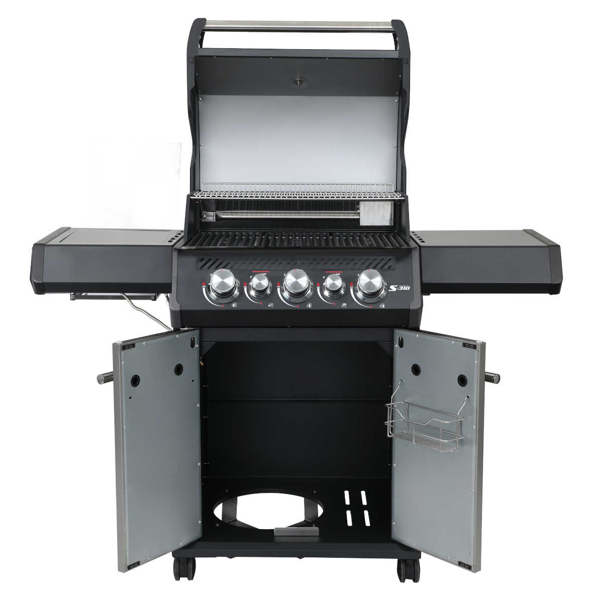 SANTOS Gasgrill S-318 | Seiten- & Heckbrenner | All Black inkl. Drehspieß | Rostheber & Silikonablage
