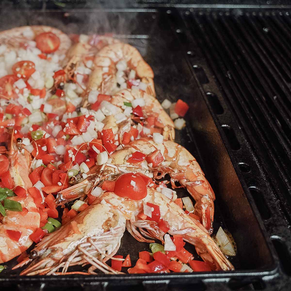Burger, Bratkartoffeln, Rührei oder Paella: Die gusseisernen Plancha ist eine für alles. Sie können Steak & Co scharf anbraten, Garnelen oder Geschnetzeltes brutzeln sowie empfindliche Fischfilets oder ganze Fische braten. Fingerfood, Grillkäse und Nürnberger fallen nicht durch den Grillrost. Wer auf klassische Pfannenkost steht, kann bei der Füllhöhe von 4 cm auch problemlos Saucen- und Schmorgerichte zubereiten. Tausendundein Grillrezept sind mit der SANTOS Guss-Einsatzpfanne kein Problem.