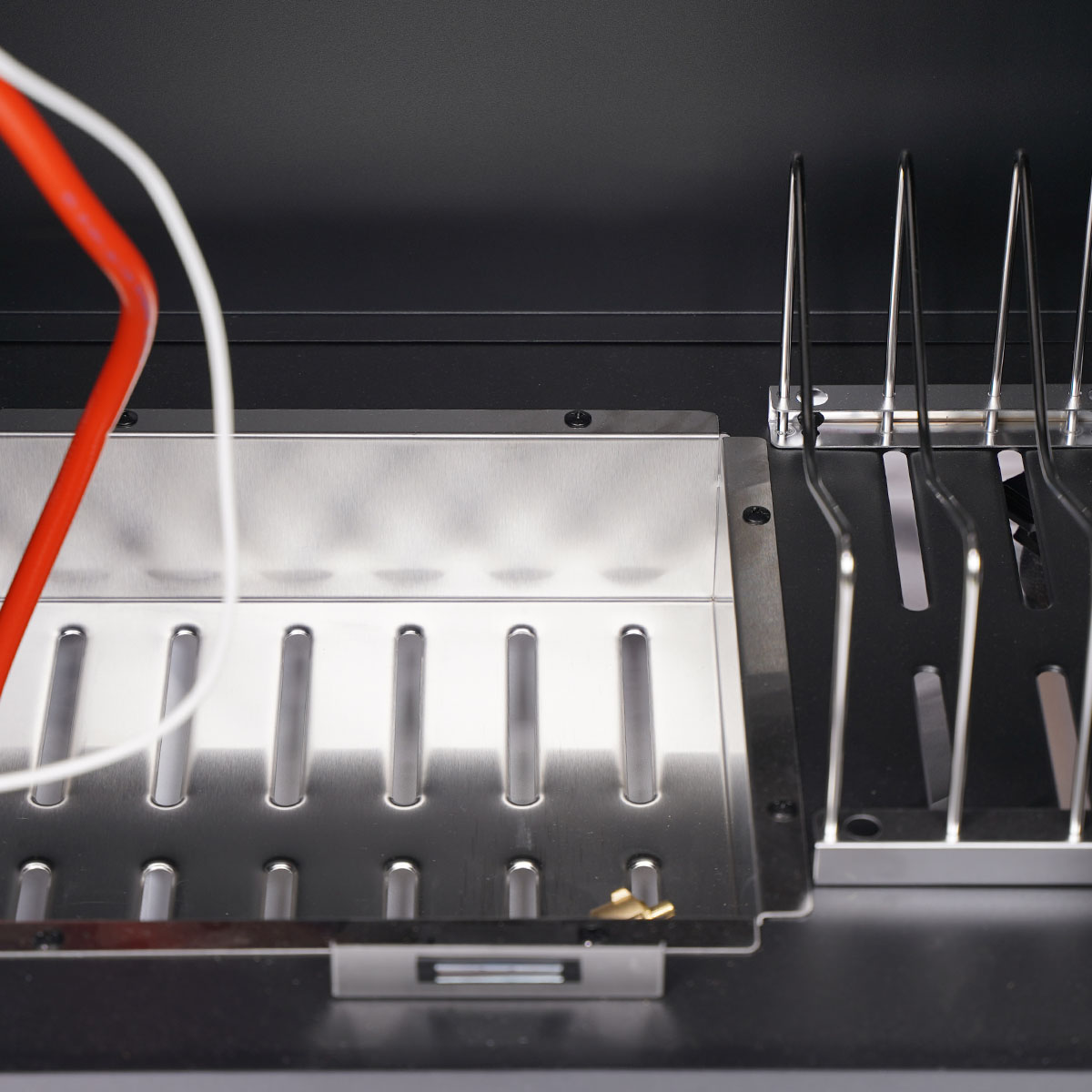 Die robuste Grillkammer, die doppelwandige Haube, das Bedienfeld und die Seitenablagen sind aus Edelstahl gefertigt, zusätzlich glänzt der Unterwagen mit einem Material-Upgrade: Alle Boden- und Seitenteile sowie die Türaußenflächen bestehen ebenfalls komplett aus Edelstahl. Selbst bei Kratzern in der Beschichtung bleibt Ihr somit von unerwünschten Roststellen verschont. Zudem ist die schwarze Pulverbeschichtung äußerst langlebig und widerstandsfähig – so erhält Euer S-318 Pro den ultimativen Schutz vor Kratzern, Korrosion, Abrieb und Ausbleichen.