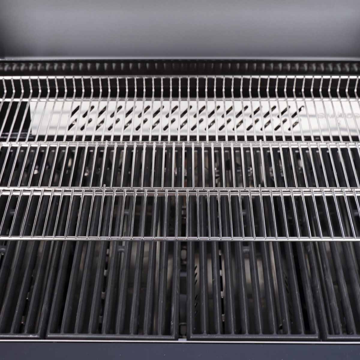 Mehr geht nicht: Der dreiteilige Edelstahl Warmhalterost des S-418 Pro lässt sich problemlos von 14 auf 24 bis zu 33,5 cm in der Tiefe ausziehen. So erhaltet Ihr eine maximale Grillfläche zum indirekten Grillen von Hühnchen, zum Nachgaren von Steaks und Burger Patties und zum Warmhalten bereits fertig gegarter Speisen.