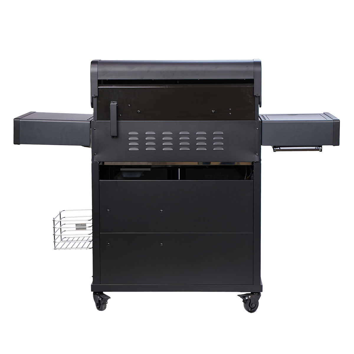 Für langjährige Haltbarkeit ohne Rostschäden wurde im SANTOS S-418 Pro All Black besonders viel hochwertiger Edelstahl Typ 430 verbaut. Neben der robusten Grillkammer bestehen auch die doppelwandige Haube, das Bedienfeld und die Seitenablagen aus Edelstahl.