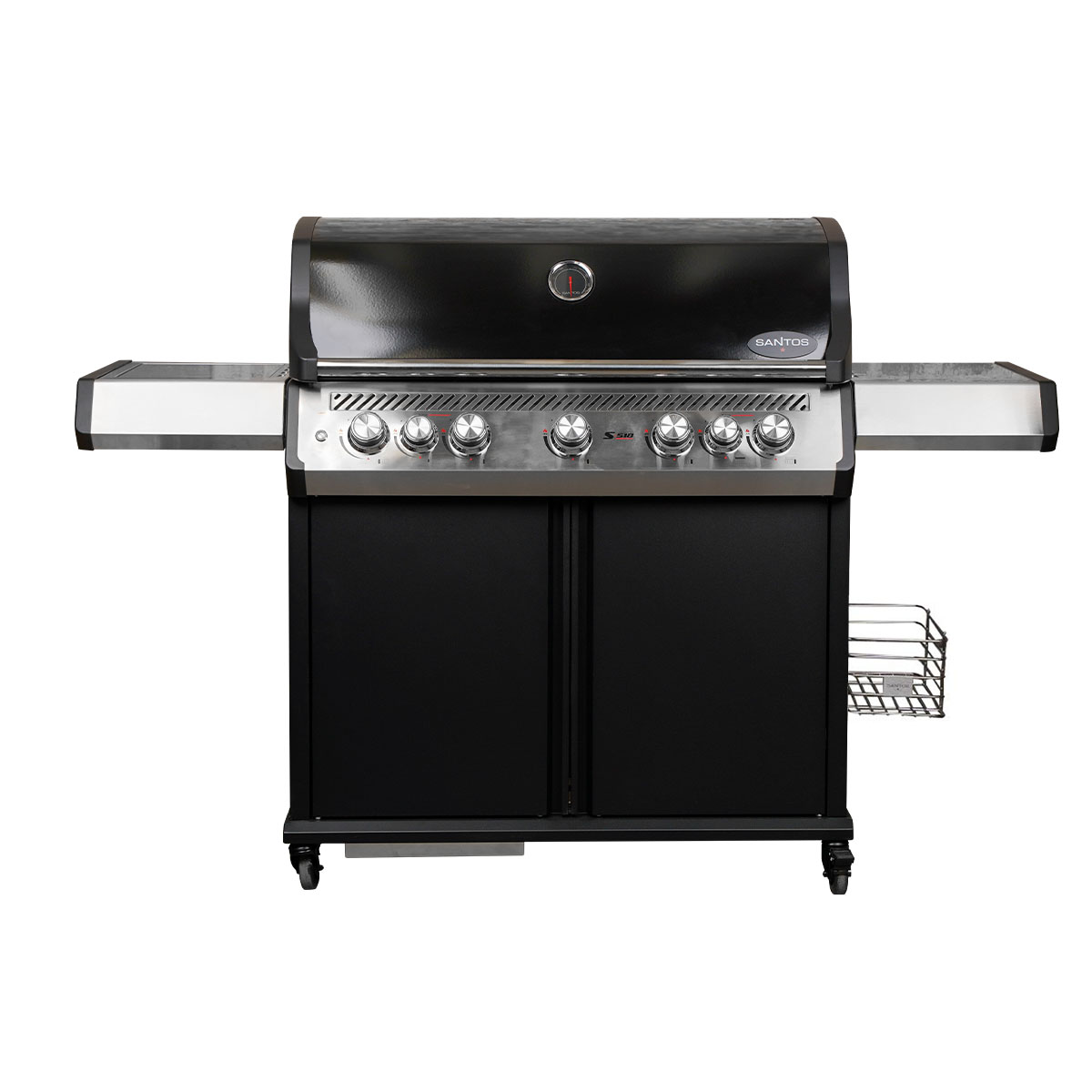 Wir haben für Euch das ultimative Bundle zusammengestellt: Unseren SANTOS S-518 Pro in Schwarz im Ready2Grill Bundle mit jeder Menge Zubehör. und mehr gehtnicht: Der SANTOS S-518 Pro ist mit seiner knapp 1 Meter breiten Grillfläche, 5 Hauptbrennern plus Backburner und 800 °C Steakzone unser Profi-Grill der Extraklasse. Bis zu 20 Personen versorgt der S-518 Pro problemlos mit köstlichen Grillmenüs. Indirektes und direktes Grillen, Braten, Schmoren, Räuchern und Backen ist für das Kraftpaket ein Kinderspiel, neueste Grilltechnologie garantiert dabei eine äußerst gleichmäßige Grill-Performance ohne Kompromisse.