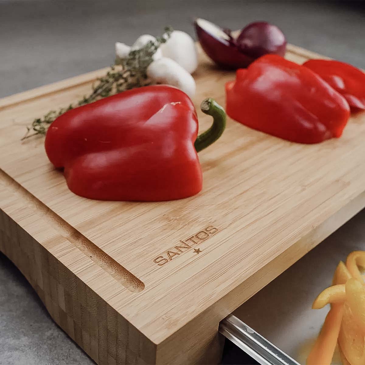 Das SANTOS Schneidebrett Bambus mit Auffangschale – vielseitig und nachhaltig