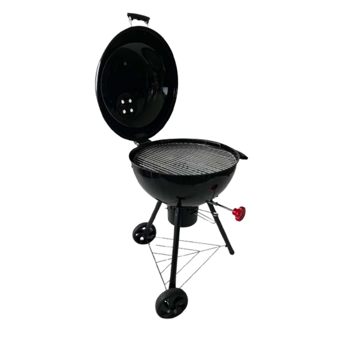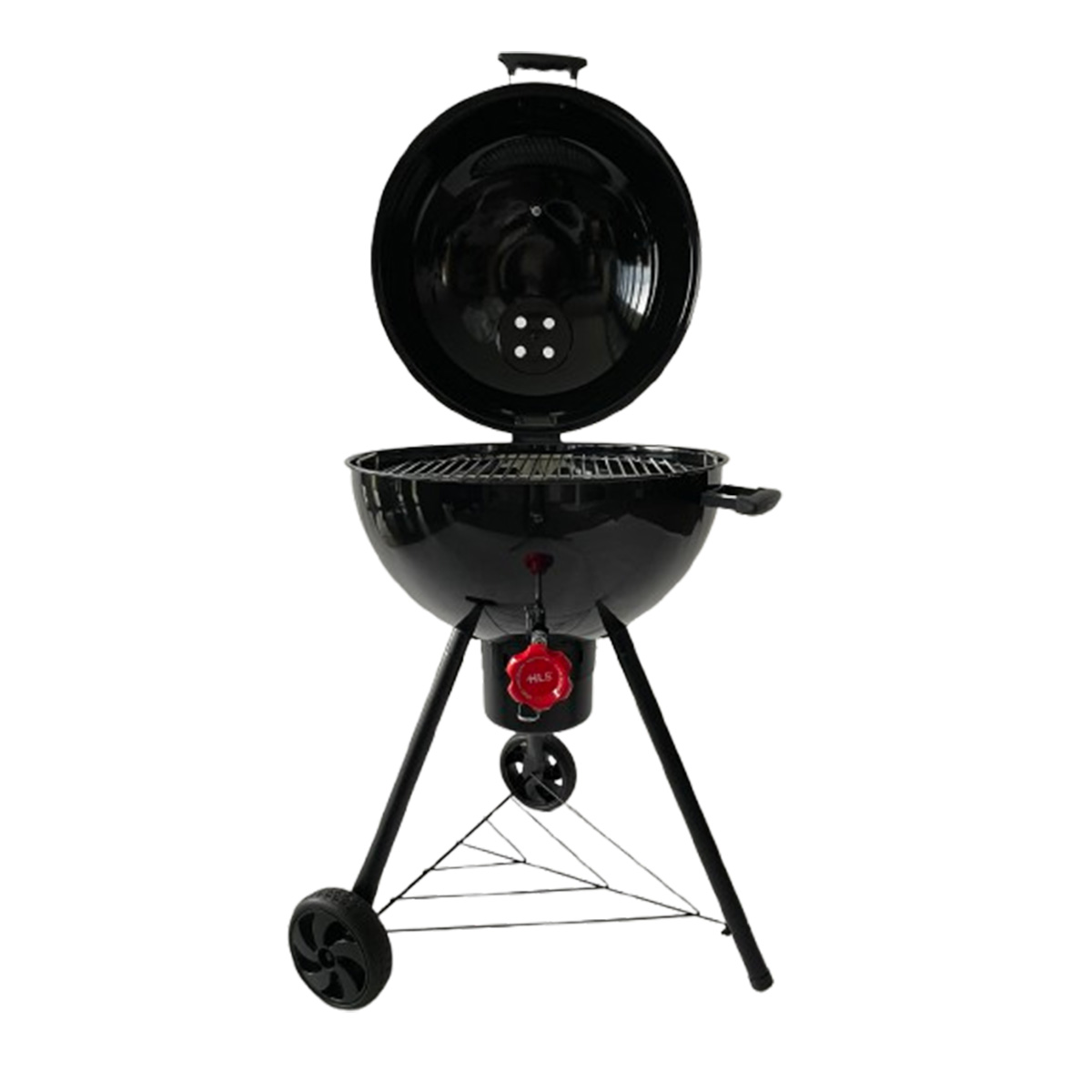Die massive Bauweise in edler schwarzer Optik macht den BlazeChef 570 zum echten Hingucker auf Terrasse, Balkon oder im Garten. Zwei große Rollen ermöglichen das einfache Verschieben auch auf unebenem Boden. Zwischen den Beinen befindet sich zudem eine stabile Abstellfläche – perfekt für Kohlevorrat, Grillbesteck oder Gewürze.