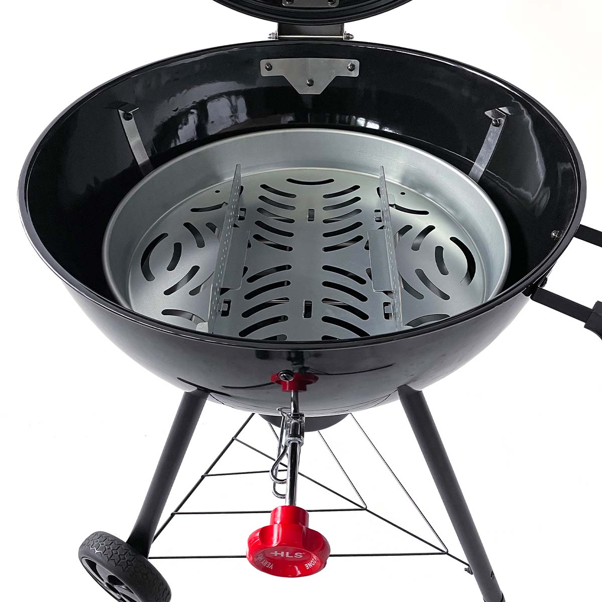 Darunter sorgt ein praktischer Kohleauffangkorb für saubere Bedingungen und eine optimale Luftzirkulation, während sich Aschereste mühelos entsorgen lassen.