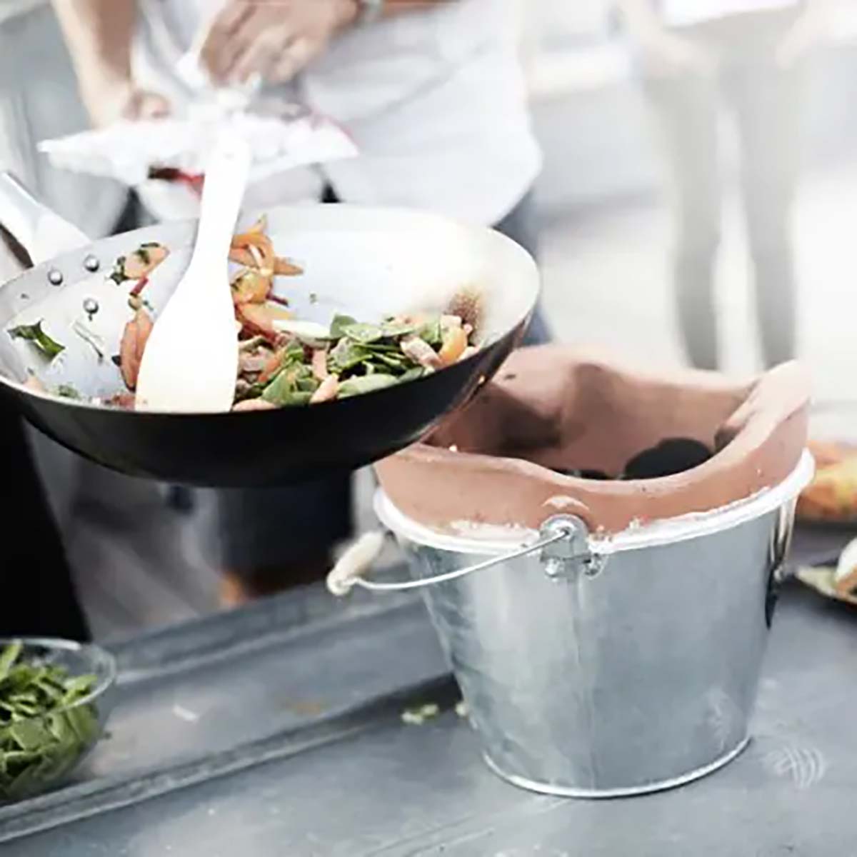 Wok Set What a Wok Gestatten, WOK. What a WOK®. Sie sind gerne draußen? Sie essen gerne gut, am liebsten mit Freunden und das am besten dort, wo es Ihnen gefällt? Dann bin ich genau der Richtige für Sie! Und, wissen Sie was? Ich bin noch zu haben! Und zwar im Set bestehend aus Wok-Ofen, Pfanne und Holzlöffel Mit mir kochen kann jeder - und das schon seit über 2000 Jahren. Ich bin ein traditioneller asiatischer Ofen, den meine Schöpfer der heutigen Zeit angepasst haben. Ich bin unkompliziert, handlich und überall im Freien einsetzbar. Ein nettes Plätzchen, eine Handvoll Holz, Feuer und los geht´s! Ich habe ganz besondere Qualitäten ich bin nämlich besonders heiß und halte lange durch! Deshalb kann man mit mir auch so gut WOKen! Was die Zutaten angeht: Arbeiten Sie mit einer Handvoll Phantasie und einer Prise Erfindergeist. Sie brauchen Ideen? Unser Wokblog ist voller Anregungen! Los geht’s! Verwenden Sie mich bitte nur im Freien! Holz oder Holzkohle OBEN einfüllen und anzünden. (Keine Flüssigbrennstoffe verwenden!) Sobald ich brenne, kann es losgehen, Sie müssen nicht auf die Glut warten! Die Pfanne Meine traditionelle asiatische Wokpfanne besteht aus rohem Eisen. Vor dem ersten Gebrauch muss man sie daher versiegeln. Das geht ganz einfach: Reiben Sie sie gereinigte und trockene Pfanne mit Erdnussöl vollständig (außen und innen!!!) ein. Danach stellen Sie die Pfanne 5-10 min auf den heißen Wokofen. Geschafft! Das eingebrannte ÖL schützt nun die Pfanne, sie ist zum Loswoken bereit. Künftig reicht es, wenn sie nach dem Gebrauch mit Wasser ausgespült wird! Chillout Nach dem Woken bleibe ich noch länger warm und freue mich, wenn alle noch ein wenig sitzen bleiben, um meine Wärme zu genießen. Woken in geselliger Runde Sie möchten nicht so gern allein woken? Wir organisieren immer wieder Wokevents, unser Wokblog hält Sie auf dem Laufenden!